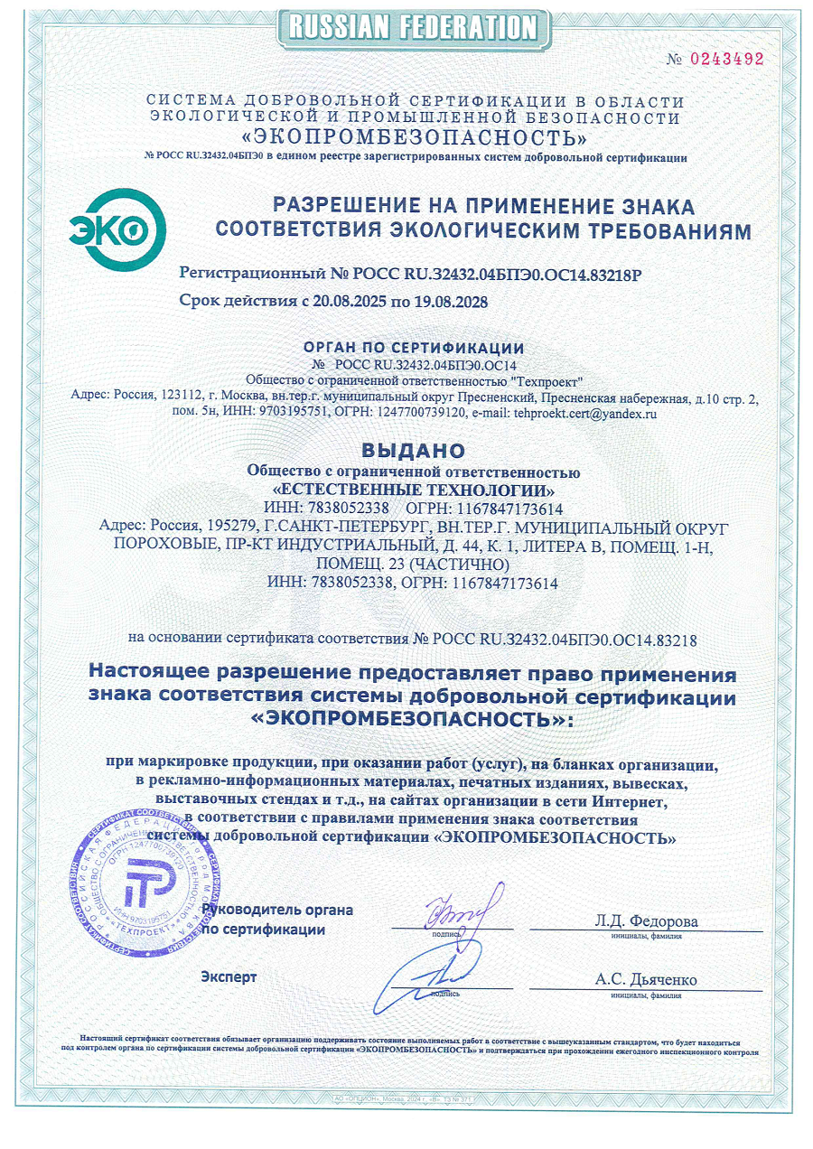 ООО «Естественные Технологии» успешно работает на рынке с 2016 года. Основной спектр услуг включает комплексные решения для производственных задач, связанных с переработкой отходов, внедрением передовых технологий и разработкой инновационных наукоёмких продуктов.