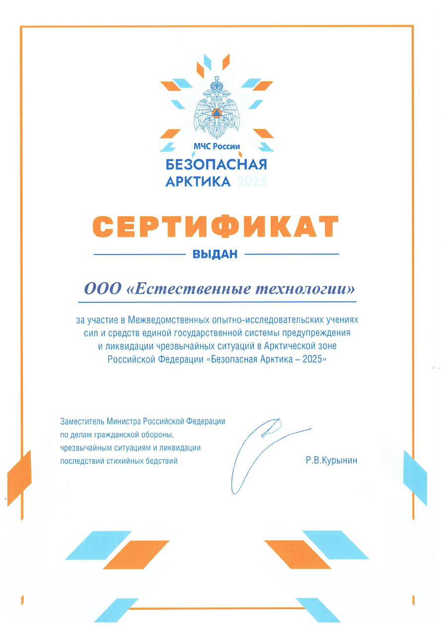 Предприятие активно участвует в испытаниях, организованных МЧС России, и помогает в ликвидации аварийных разливов нефти. Например, в начале 2025 года «Естественные технологии» участвовали в устранении разлива мазута на Черноморском побережье.