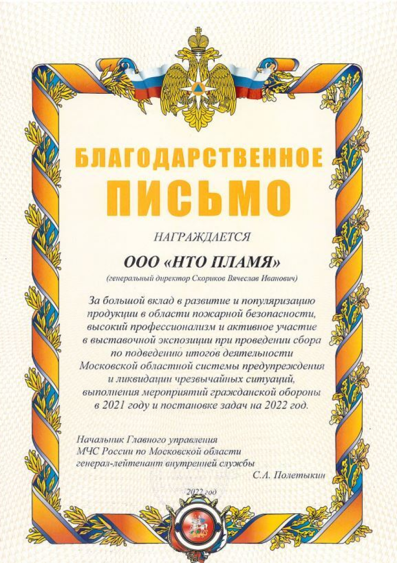 Оборудование для пожаротушения ООО «НТО Пламя»