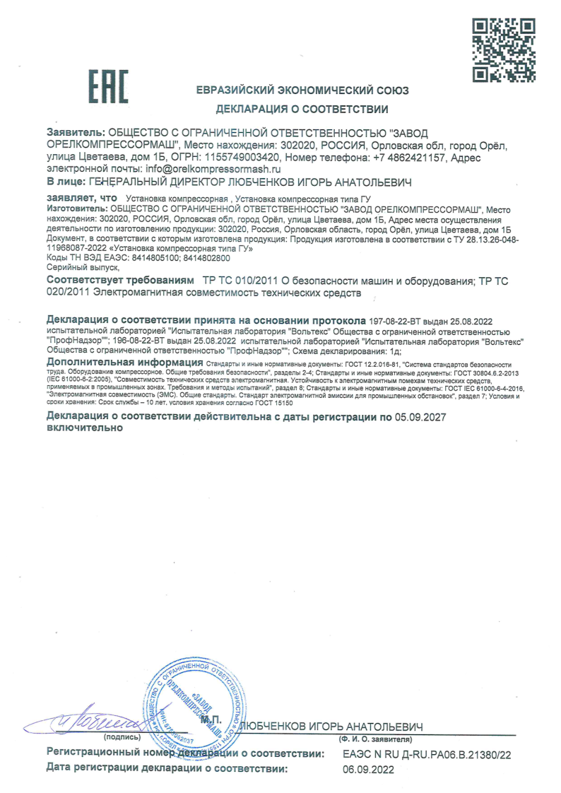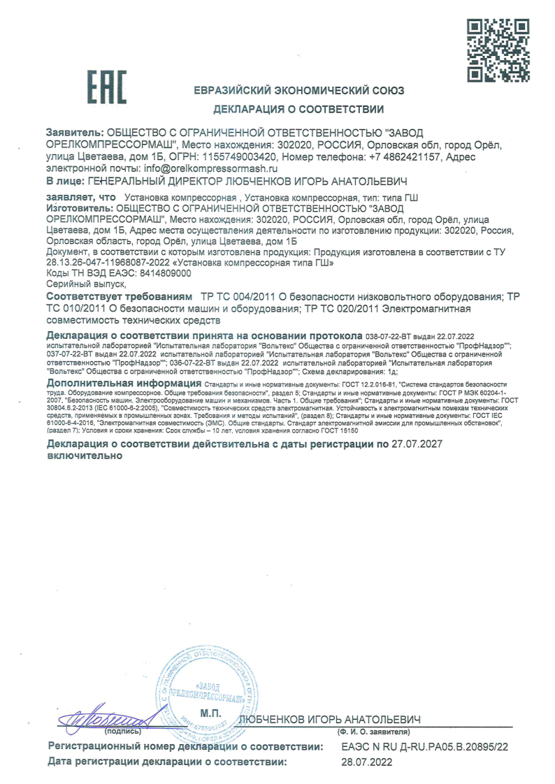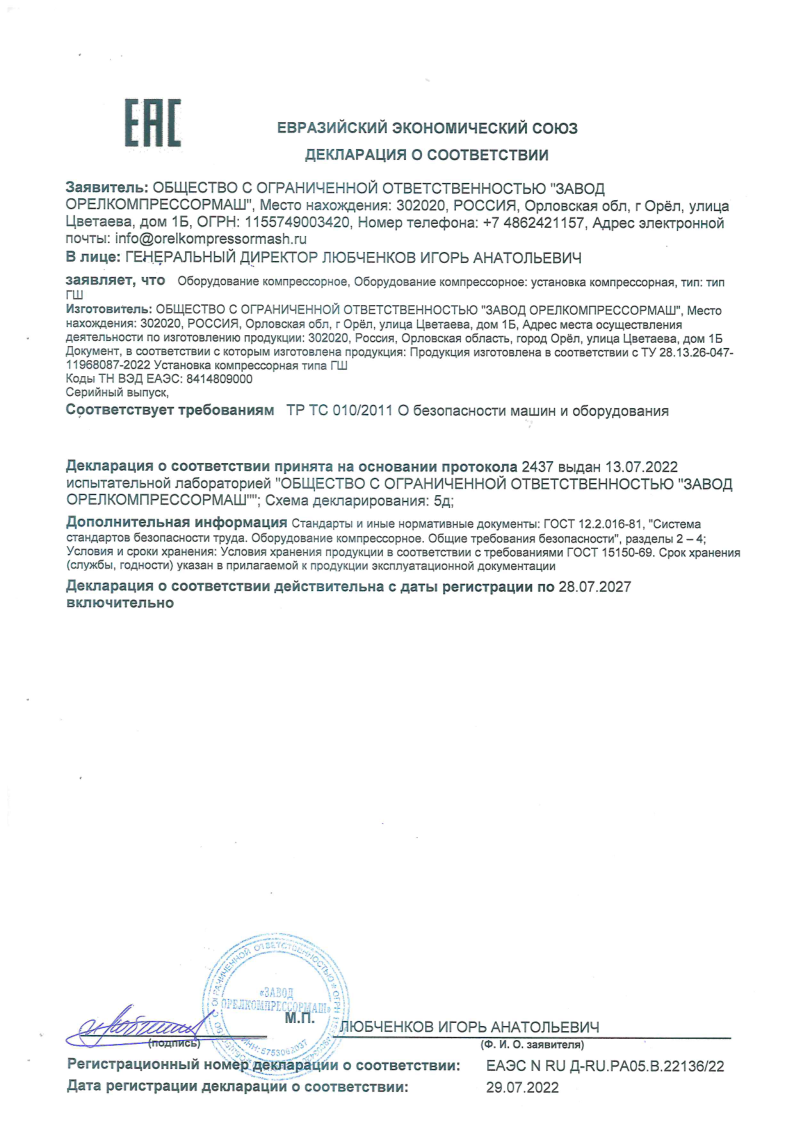Декларация о соответствии ГШ |