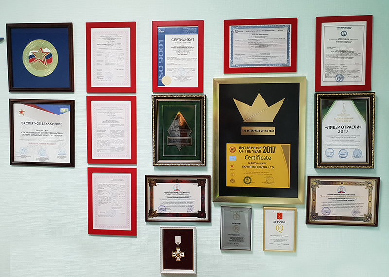 • Северо-Западный Центр Экспертиз, за период с 2015 по 2024 годы, стал дипломантом конкурсов «100 лучших товаров/услуг России», а также лауреатом и дипломантом «Премии Правительства Санкт-Петербурга по качеству». В 2024 году Общество получило звание «Надёжный поставщик продукции и услуг» по итогам общероссийского конкурса. В 2023 году, согласно национальному бизнес рейтингу, Центр был признан «Лидером России». Всероссийский бизнес рейтинг, по итогам ежегодной комплексной оценки, присудил Северо-Западному Центру Экспертиз звание «Предприятие года 2022».